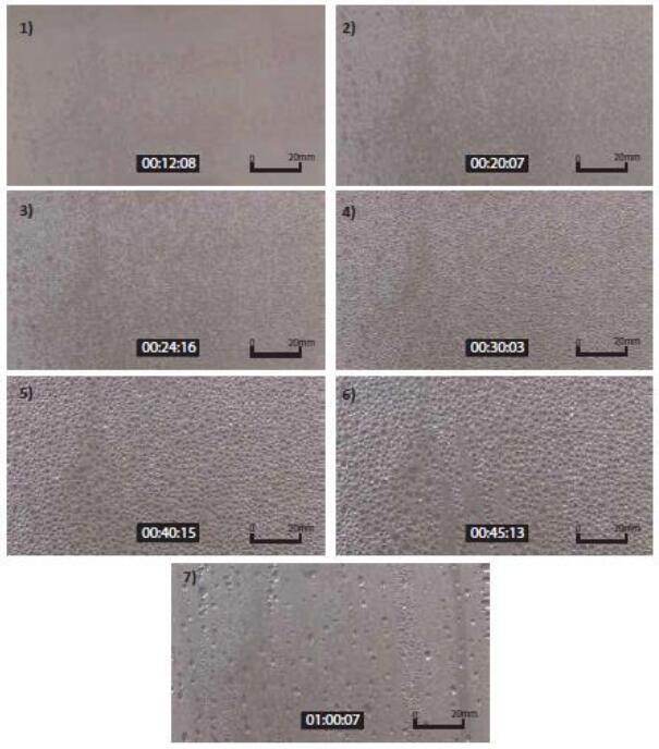 冷凝步骤开始12分钟后,试样表面开始形成一层冷凝膜。甚至在此之前,在样品表面形成了微小的水滴。