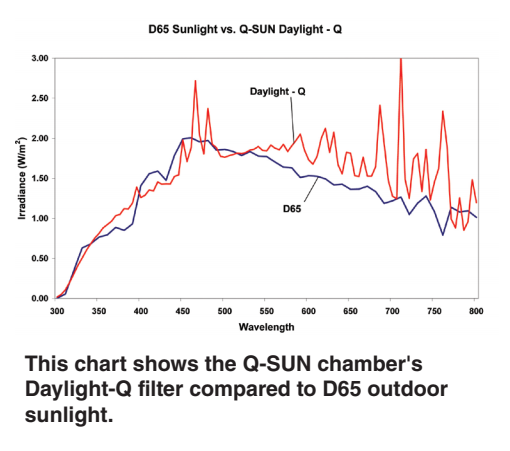 ICH指南没有规定光谱是否应与D65或ID65匹配。通常,ID65光谱是用Q-SUN中的WINDOUS-Q 滤光片模拟的,因为它模拟了进入建筑物内部的阳光。然而,日光滤光片适用于室外应用,如染发剂和防晒霜。
