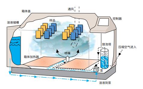 在喷雾循环期间,腐蚀盐雾箱进行常规操作: