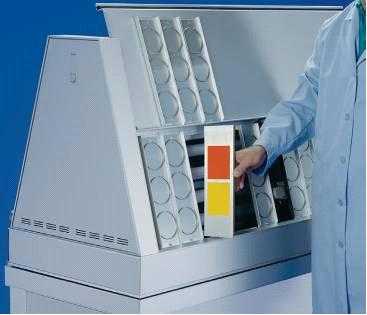 7.超大的平面样品可直接安装在QUV加速老化测试仪的架子上(取掉几个标准样品架就行)。同样,小的,异形的零件可以安装在金属背卡或放置在可选的安装盒中