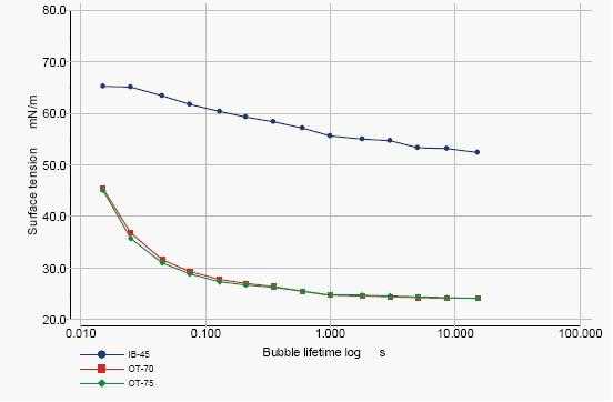 使用德国SITA 动态表面张力仪,直接得出表面活性剂的动态表面张力数据:
