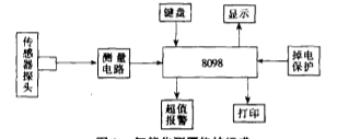 是由高频涡流发射式传感器探头,测量电路,8098单片机控制系统组成。如图所示: