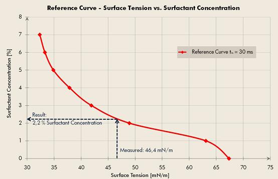 准备足够数量的不同浓度的样品,它们必须能够涵盖整个应用范围。使用步骤1得到的较佳汽泡寿命时间,测定并制作表面张力与浓度的关于曲线坐标图。