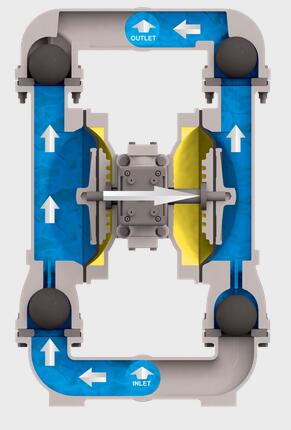 S20隔膜泵的端口尺寸是2寸,容量是0至160 GPM605 LPM,排量是0.46加仑1.73升,是一款很受欢迎的非金属气动隔膜泵。