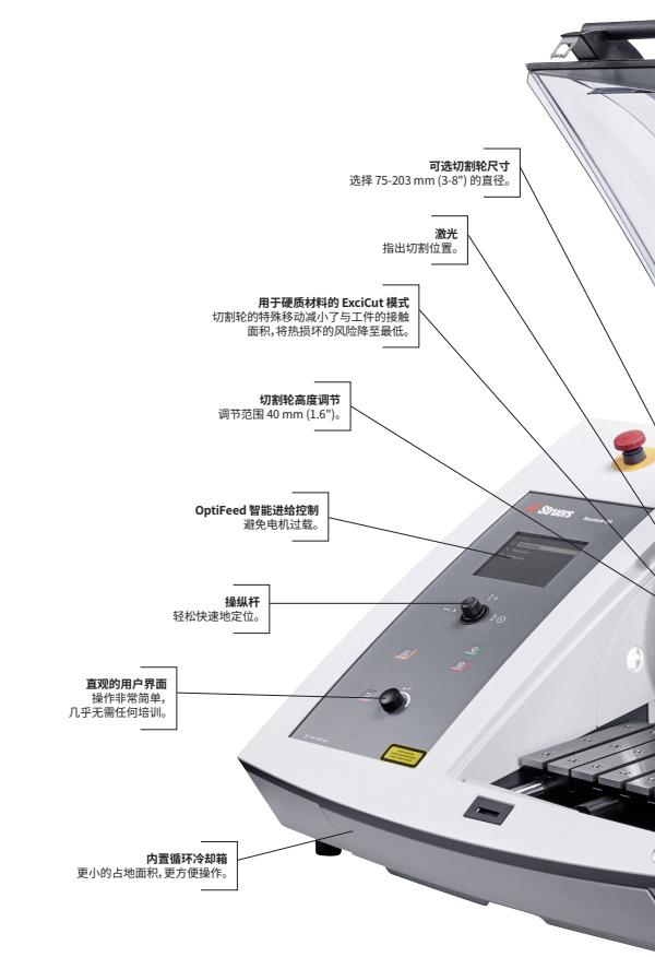 一次尝试即可达到合适的位置 定位可能很费时,但 Secotom 使用激光定位指出切割位置, 定位从此变得轻而易举。 激光与操纵杆相结合,实现轻松 定位。