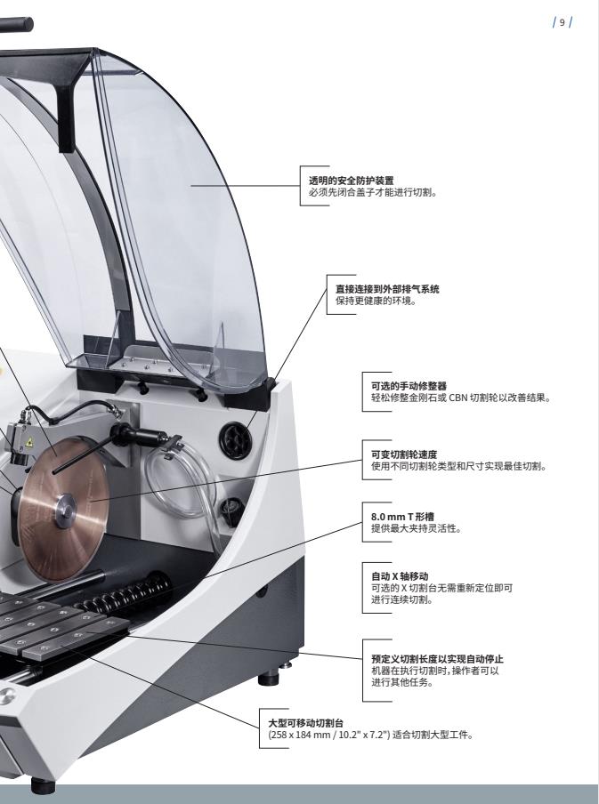 即可全面切割大多数材料Secotom 能够精密地切割所有需要金相检测的稳定材料,例如金属、陶瓷、复合材料、烧结碳化物、电子元件、晶体、矿物等