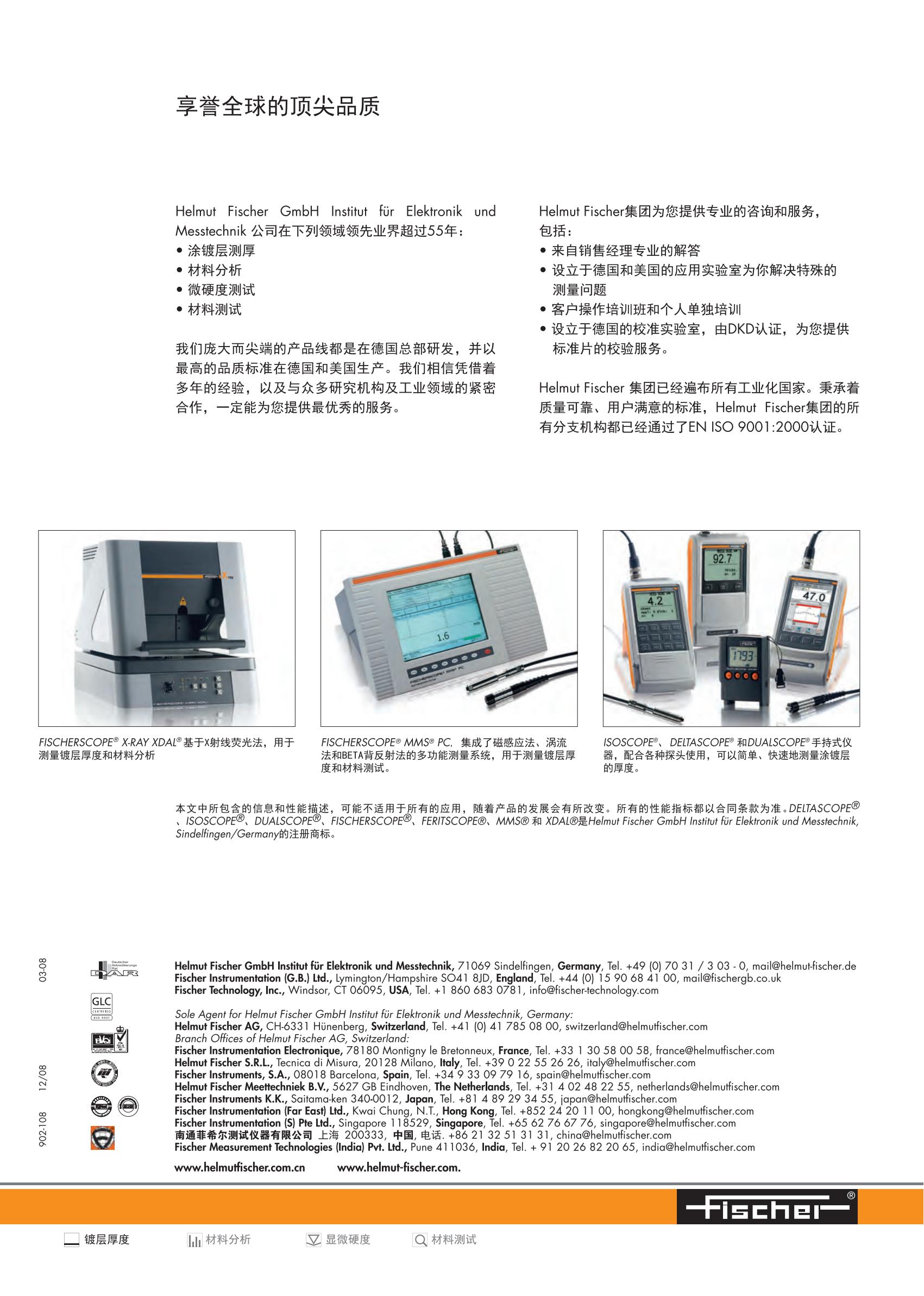 菲希尔FMP10涂层测厚仪可以适配所有基于磁感应法或涡流法的探头使用,主机包括采用磁感应测量DELTASCOPE、电涡流测量ISOSCOPE两款主机。